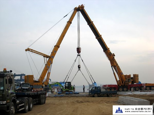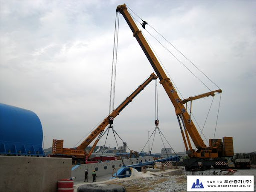 작업현장 : 평택항 작업내용 : 푼툰구간 풀로트 램프 설치 투입장비 : AC700 , LTM1400