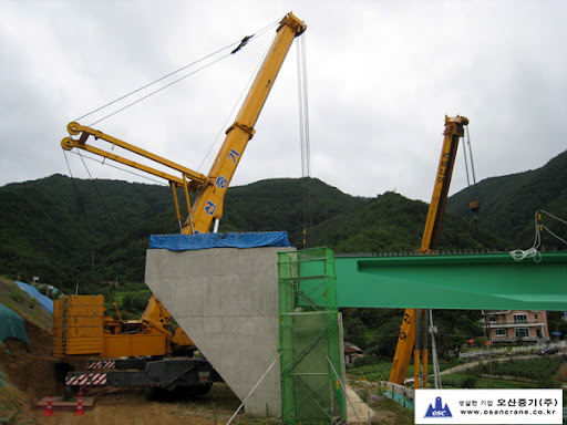 * 현 장 : 강원도 삼척 * 작업내용 : 50M/180톤 거더 설치 * 투입현황 : 400톤(1대), 300톤(2대)